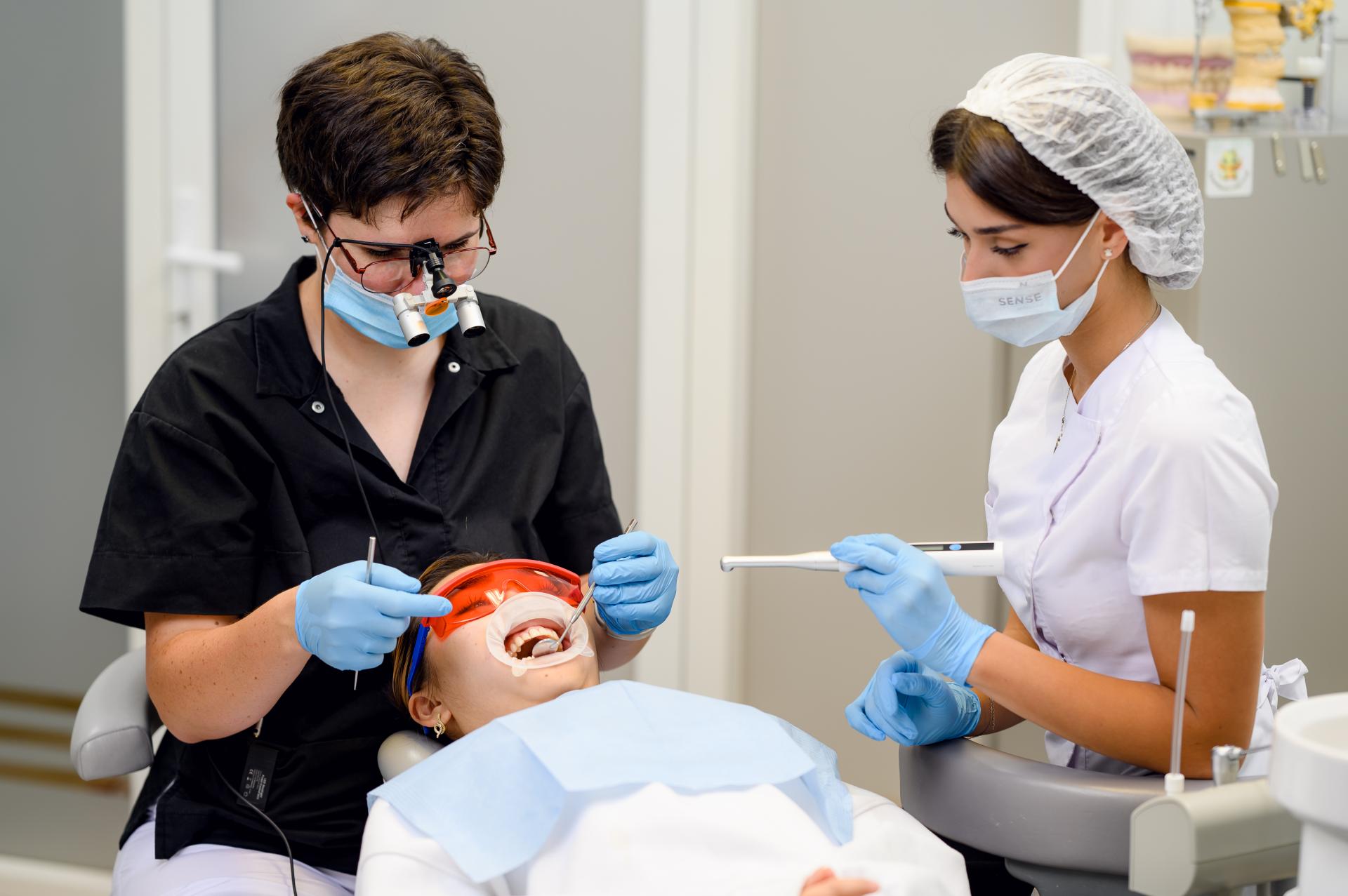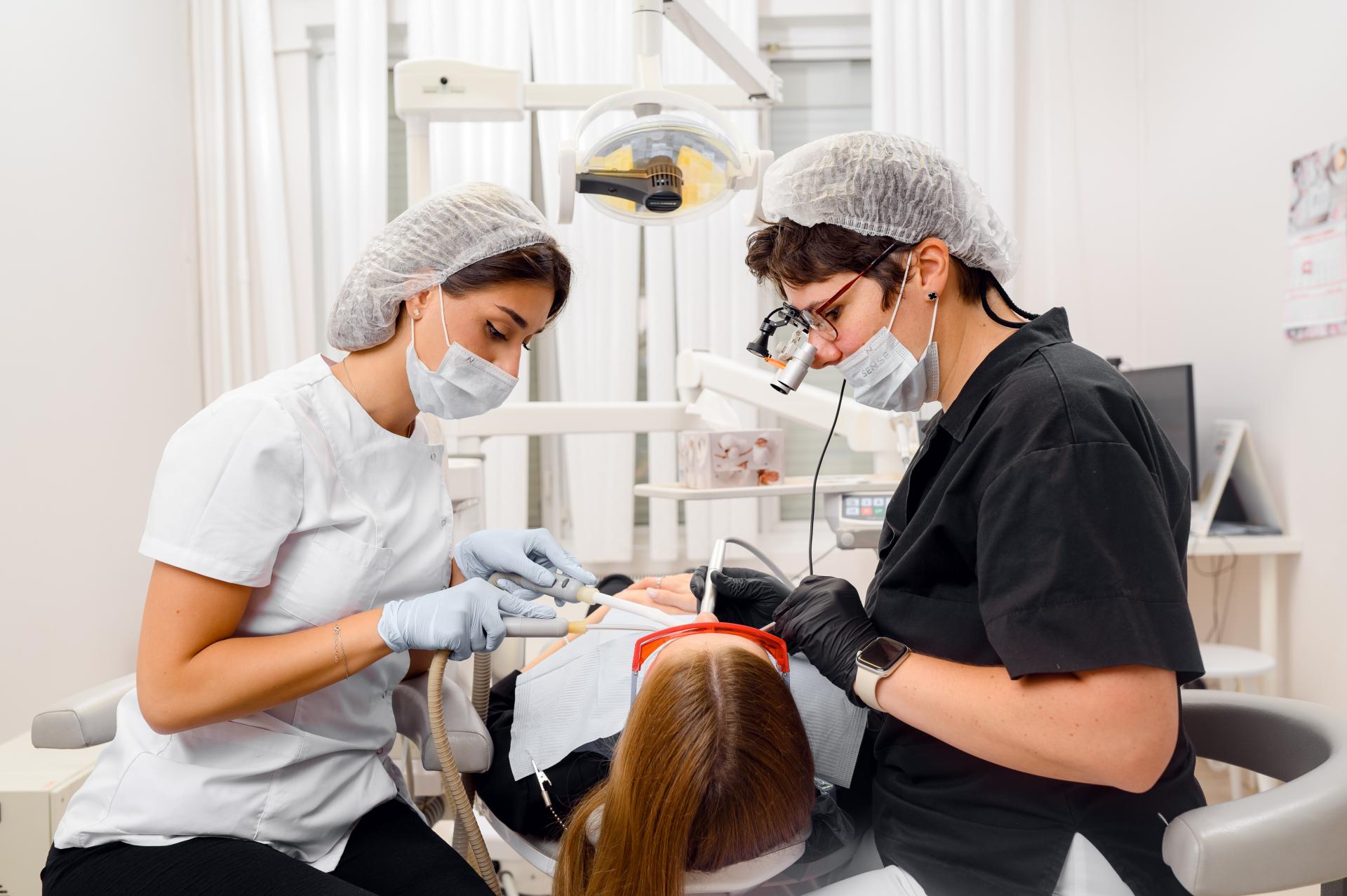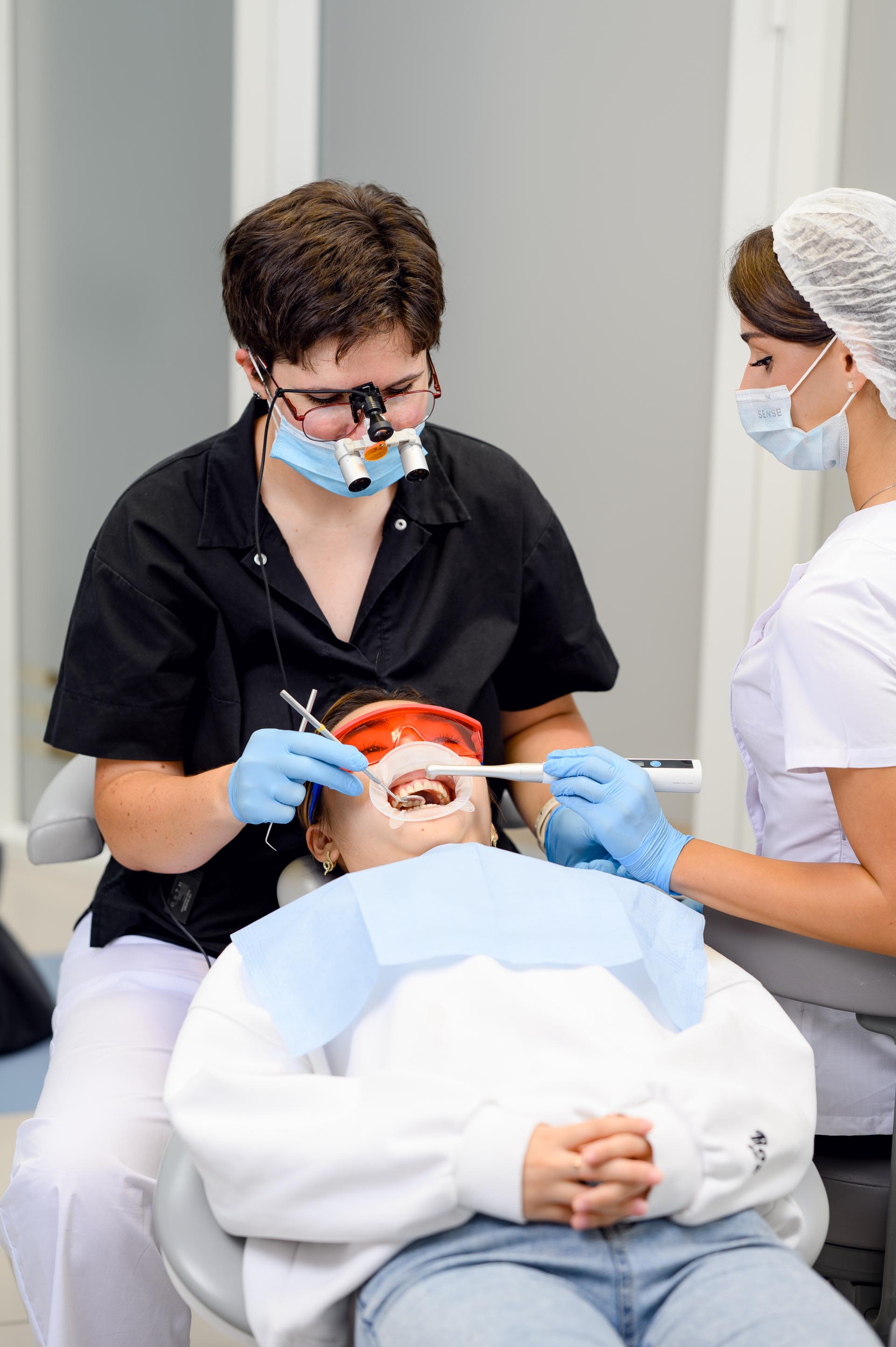 Принимает терапевт: лечение зубов, лечение кариеса, лечение пульпита и периодонтита, гигиена полости рта.