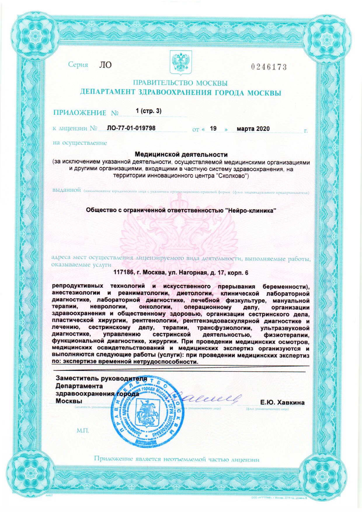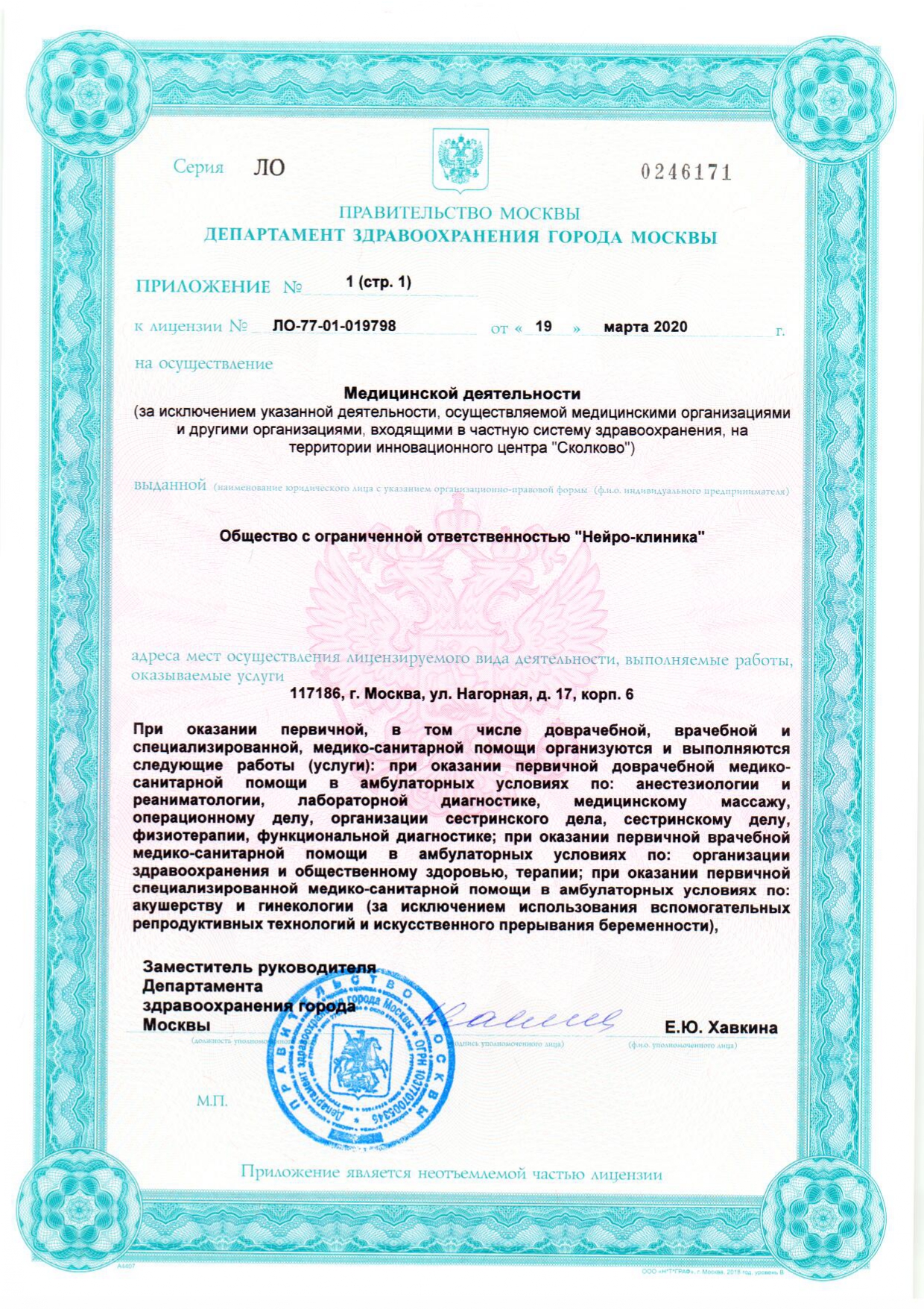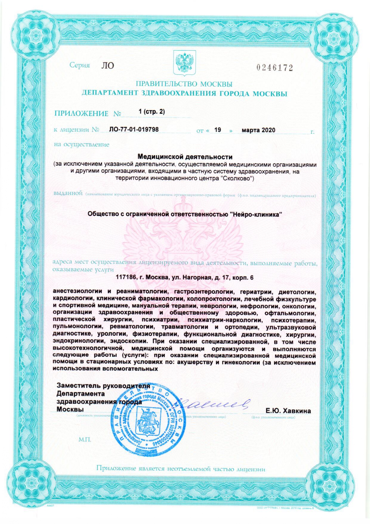 Профили центра: неврология, онкология, хирургия, реабилитация, травматология и ортопедия, гинекология, маммология, терапия, кардиология, реанимация и интенсивная терапия.