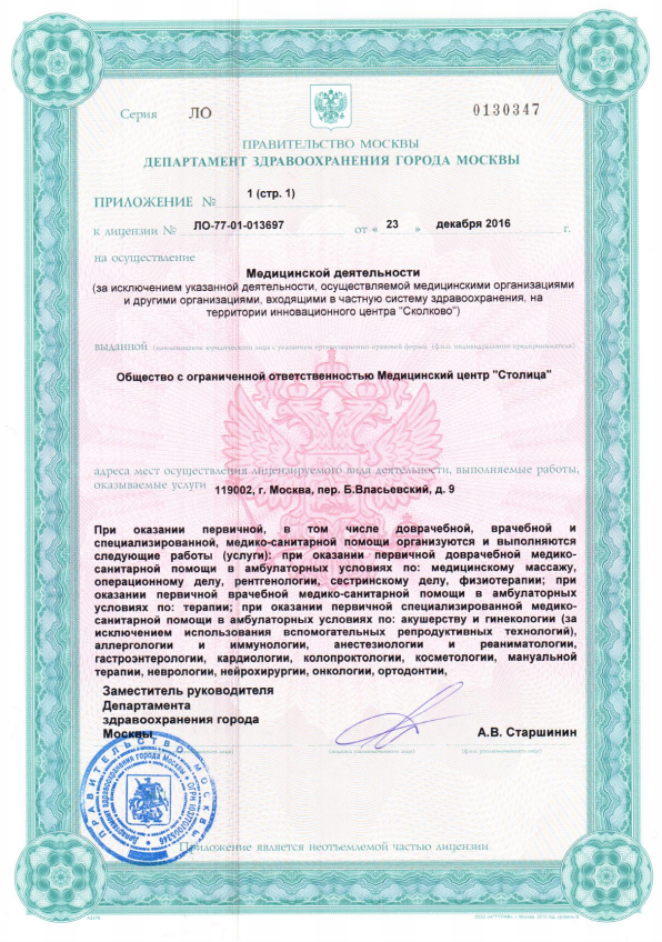 Клиника "Столица" на Арбате входит в сеть общегородских медицинских центров, оказывает услуги диагностики и лечения широкого спектра болезней. Основное направление работы лечебно-диагностического центра — комплексное оздоровление организма, профилактика заболеваний и осложнений. В медцентре работают врачи всех направлений, прием ведут также приглашенные зарубежные специалисты. Это ведущие врачи высшей и первой квалификационной категории, кандидаты и доктора наук. Четкая организация рабочего процесса, отсутствие очередей, работа с корпоративными клиентами и индивидуальные программы обеспечивают европейское качество обслуживания каждого пациента.