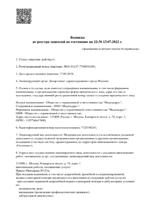 "Медквадрат" на Каширском шоссе — это один из трех ведущих медцентров сети, предоставляет полный объем услуг в одном медучреждении.