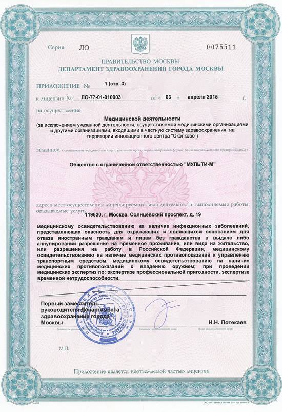 1. Проведение предварительных и периодических медицинских осмотров работников коммерческих и государственных предприятий согласно приказа Минздравсоцразвития России от 12.04.2011 N 302н.