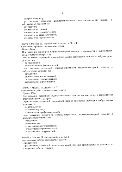 Пациентам предлагаются следующие услуги:
